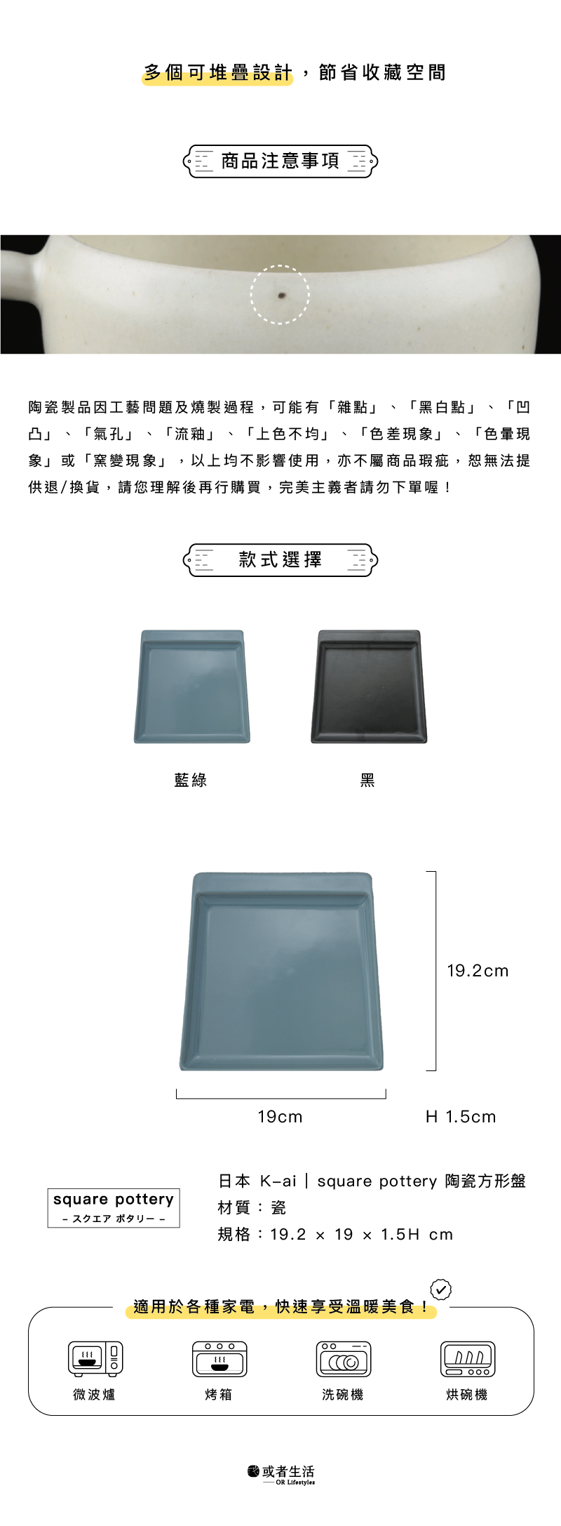 陶瓷製品因工藝問題及燒製過程,可能有「雜點」、「黑白點」、「凹凸」、「氣孔」、「流釉」、「上色不均」、「色差現象」、「色暈現象」或「窯變現象」,以上均不影響使用,亦不屬商品瑕疵