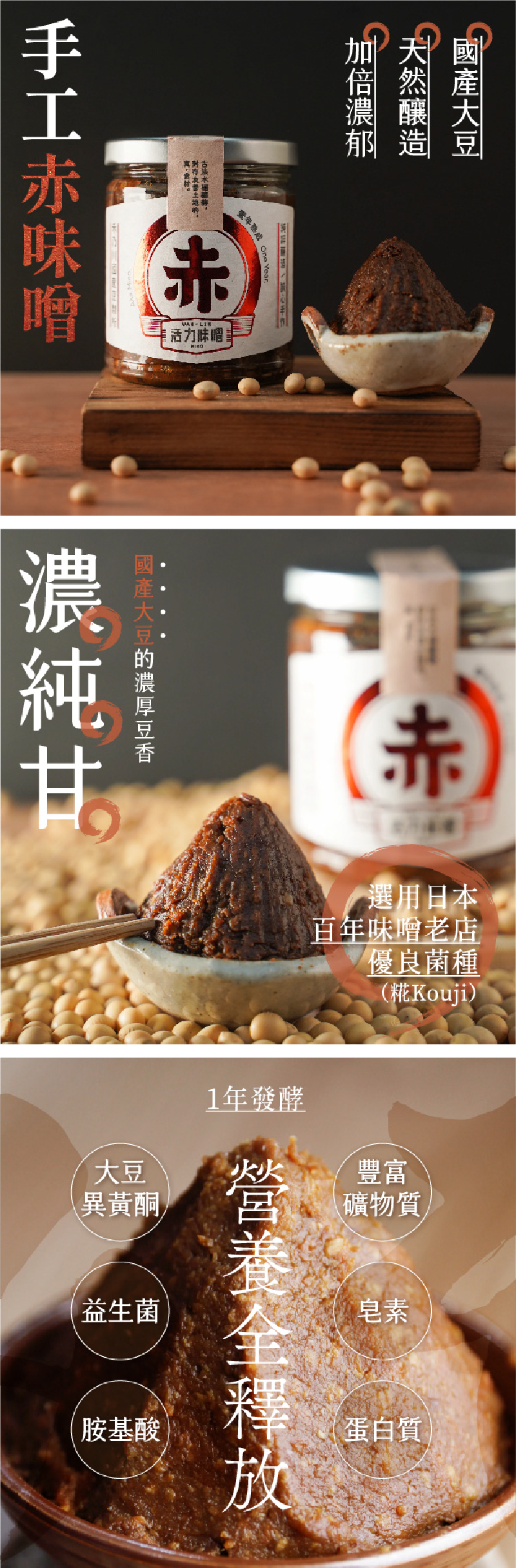 ●成分:國產非基改黃豆、禾乃川米麴、洲南日曬海鹽、水
