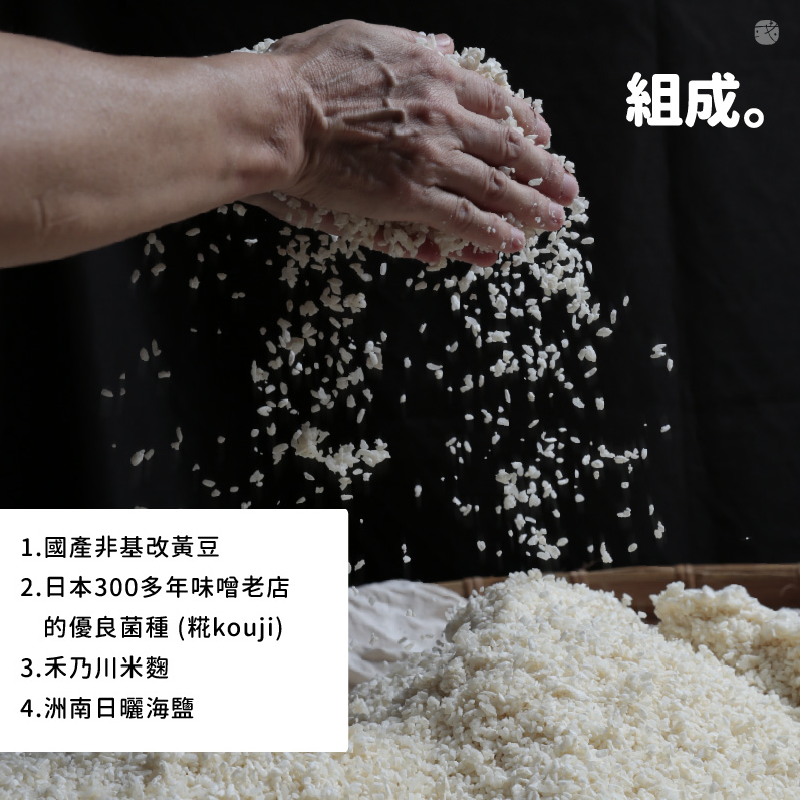 ●成分:臺灣非基改黃豆、禾乃川米麴、洲南日曬海鹽、水