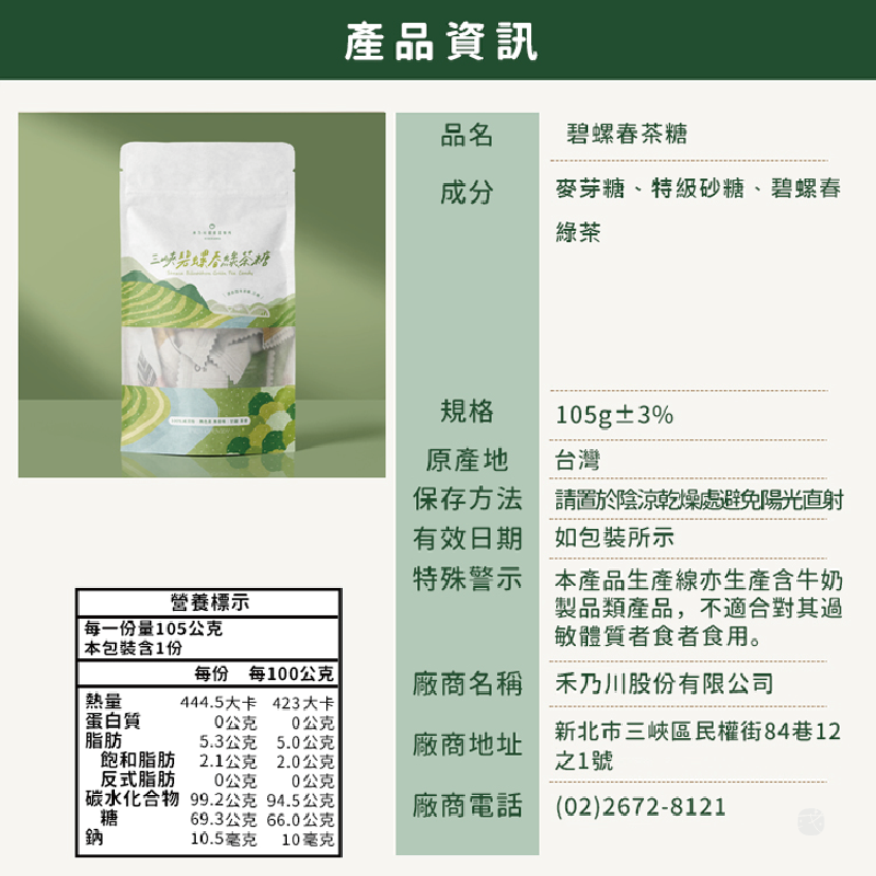 ●成分:麥芽糖、特級砂糖、碧螺春綠茶