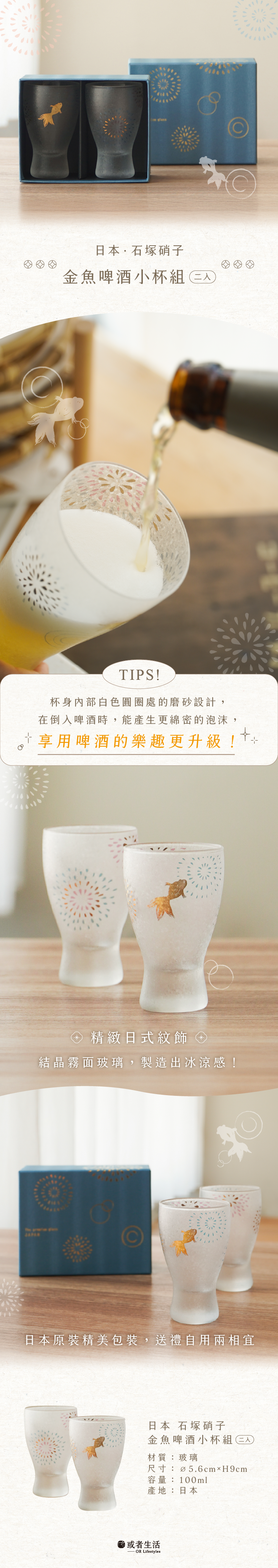 杯身內部的白色磨砂圓圈設計,能在倒入啤酒時激發綿密泡沫,讓飲用體驗更升級;搭配精緻日式紋飾與結晶霧面玻璃,呈現清爽冰涼感。