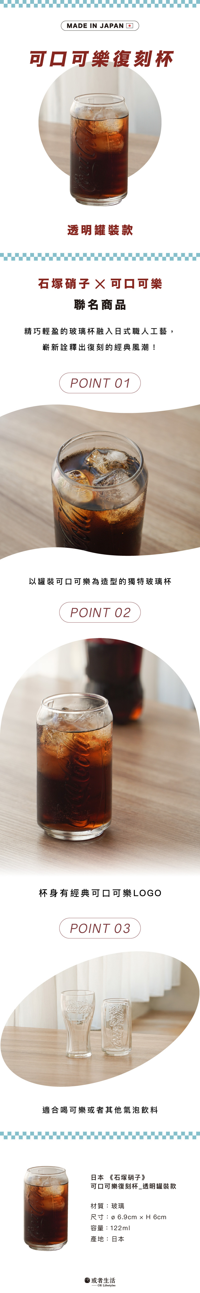 日本百年品牌石塚硝子與可口可樂聯名,推出輕盈玻璃杯,採罐裝可樂造型,帶有經典logo,適合飲用可樂及氣泡飲料!