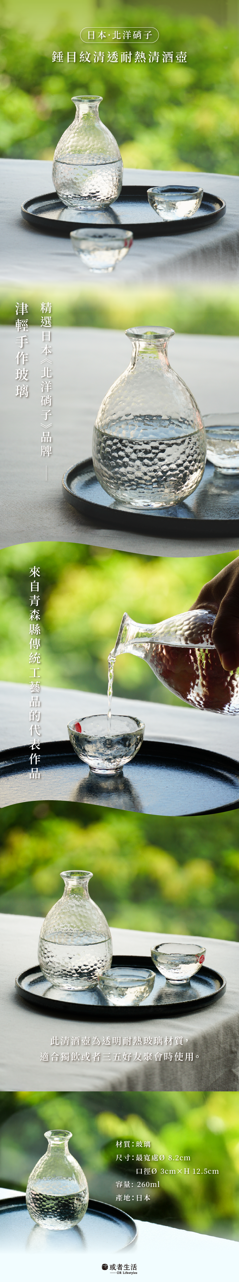 精選日本《北洋硝子》品牌-津輕手作玻璃,來自青森縣傳統工藝品的代表作品。此清酒壺為透明耐熱玻璃材質,適合獨飲或者三五好友聚會時使用。