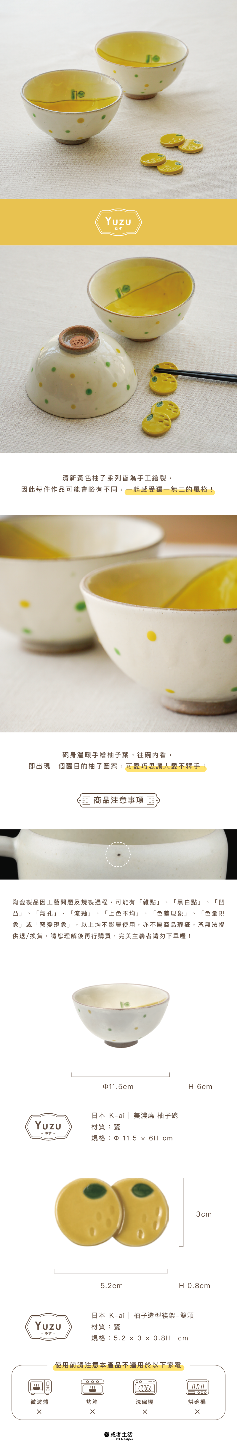 清新可愛的柚子碗搭配柚子筷架,碗內圖案皆為手工繪製,每件紋樣略有不同,為日常餐桌增添溫暖和風質感。