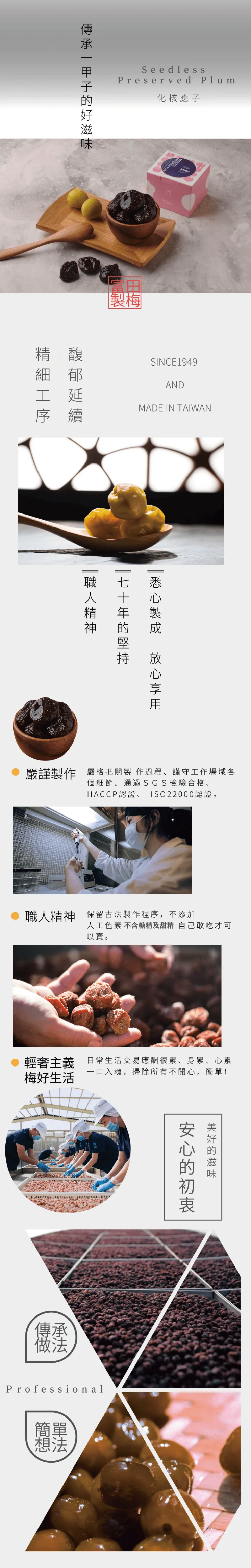 富田經典系列「化核應子」-嚴選台灣的紅肉李經由富田傳統工藝釀製,古法浸泡60天以上的濃醇滋味,獨家改良無添加色素的化核應子,有著傳承一甲子的好滋味。