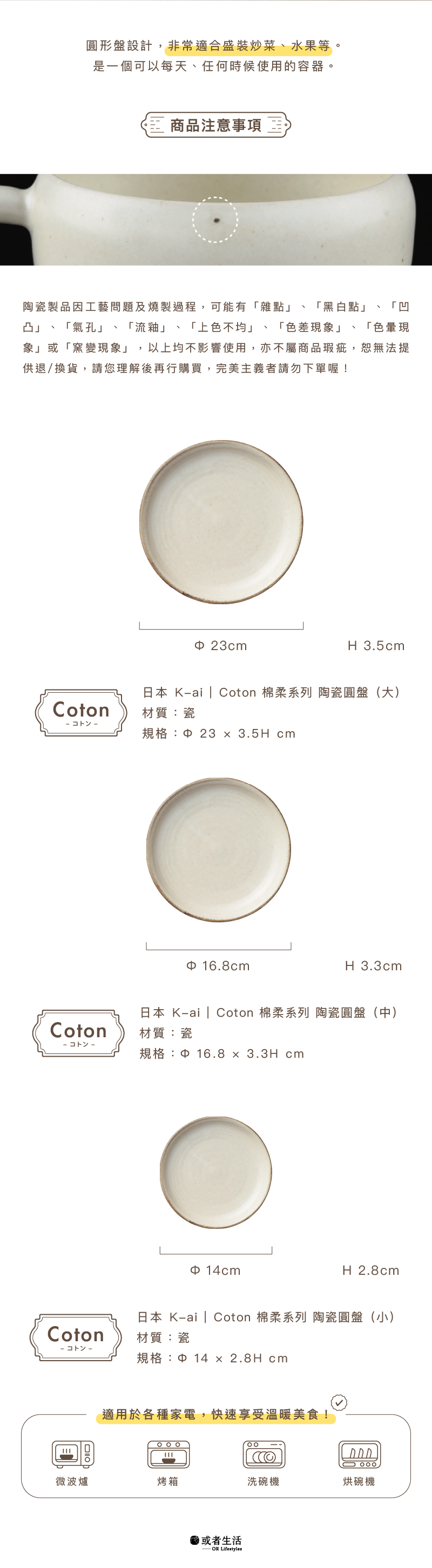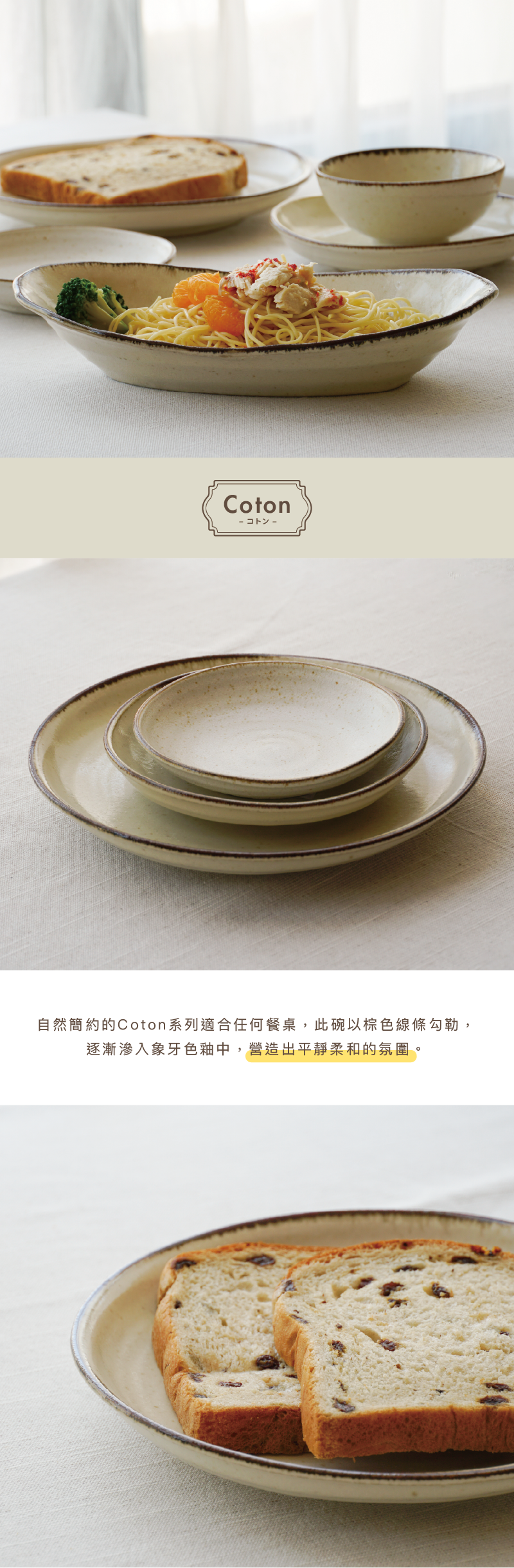 ⾃然簡約的Coton系列適合任何餐桌,圓形盤設計,非常適合盛裝炒菜、水果等,是⼀個可以每天、任何時候使⽤的容器。