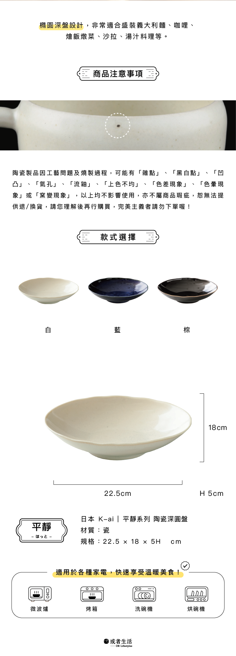 橢圓深盤設計,非常適合盛裝義大利麵、咖哩、燴飯、燉菜、沙拉、菜盤、水果、湯汁料理等。