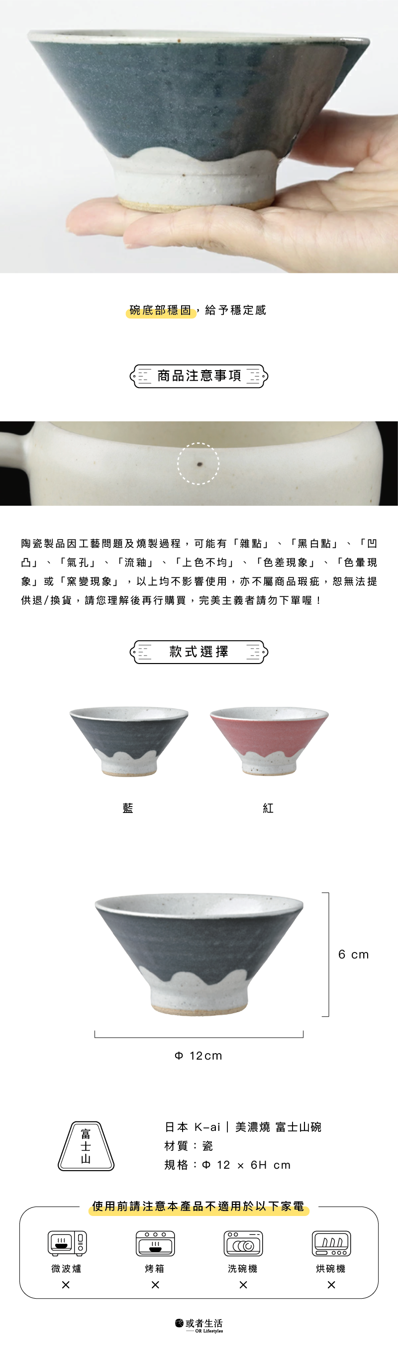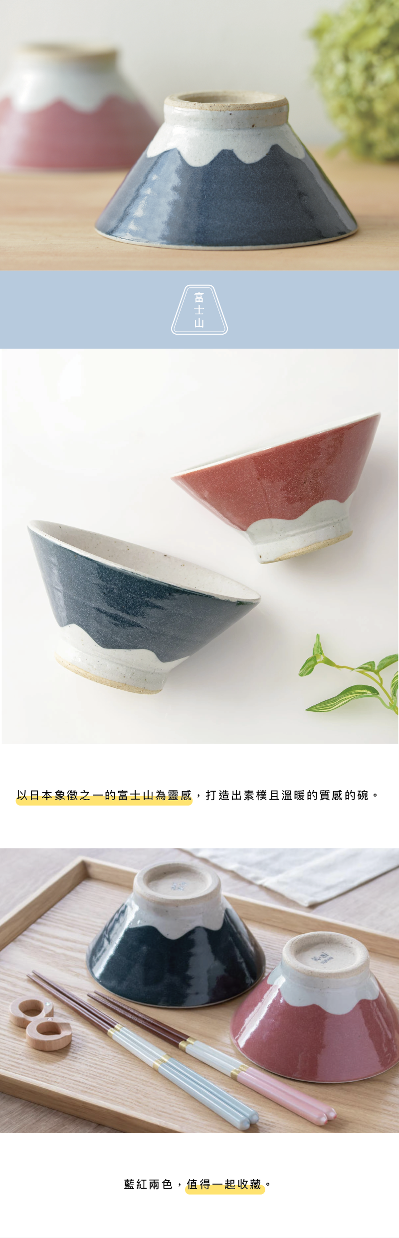 以日本象徵之一的富士山為靈感,打造出素樸且溫暖的質感的碗,藍紅兩色,值得一起收藏!