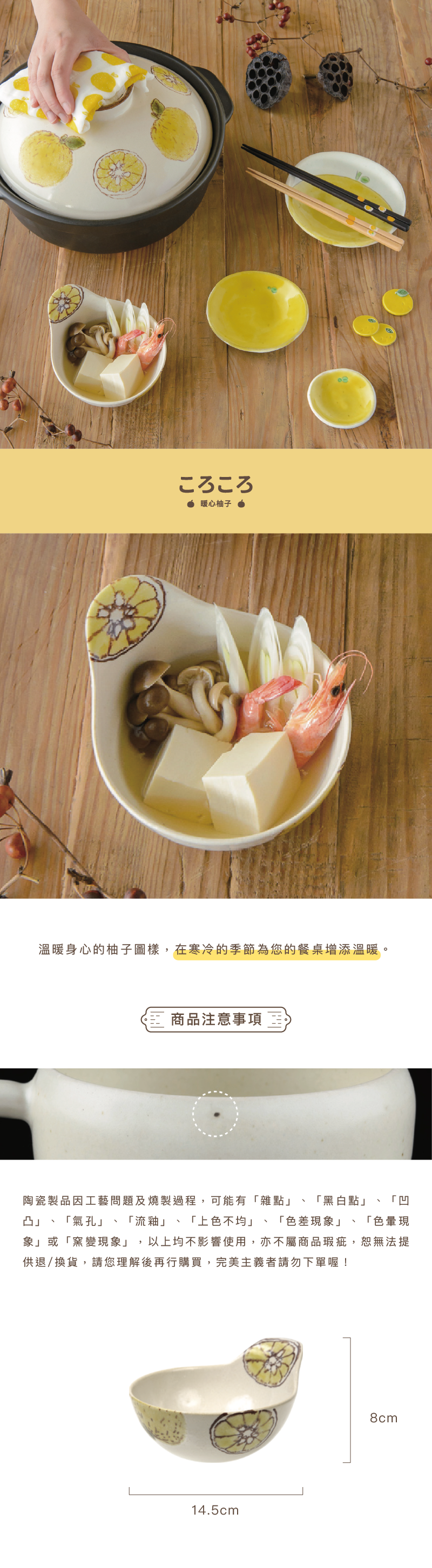 由於尺寸稍大,也可用作小碗或湯容器,放入熱的東西時,握住手把方便使用!