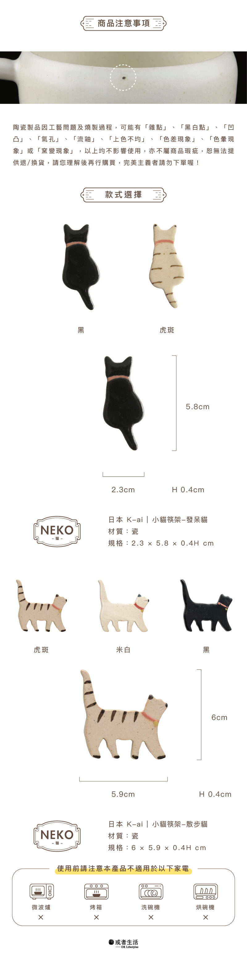 ●顏色:發呆貓黑色、發呆貓虎斑、發呆貓米白、散步貓虎斑、散步貓米白、散步貓黑色