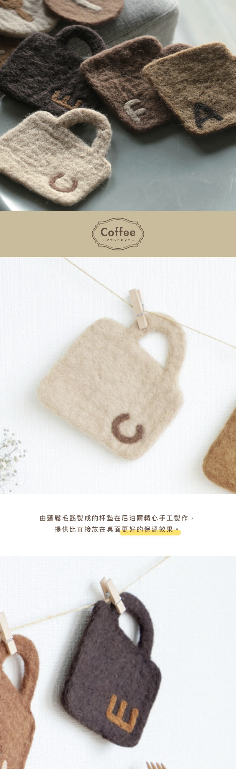 在尼泊爾精心手工製作的蓬鬆毛氈製成的杯墊,提供比直接放在桌面更好的保溫效果。