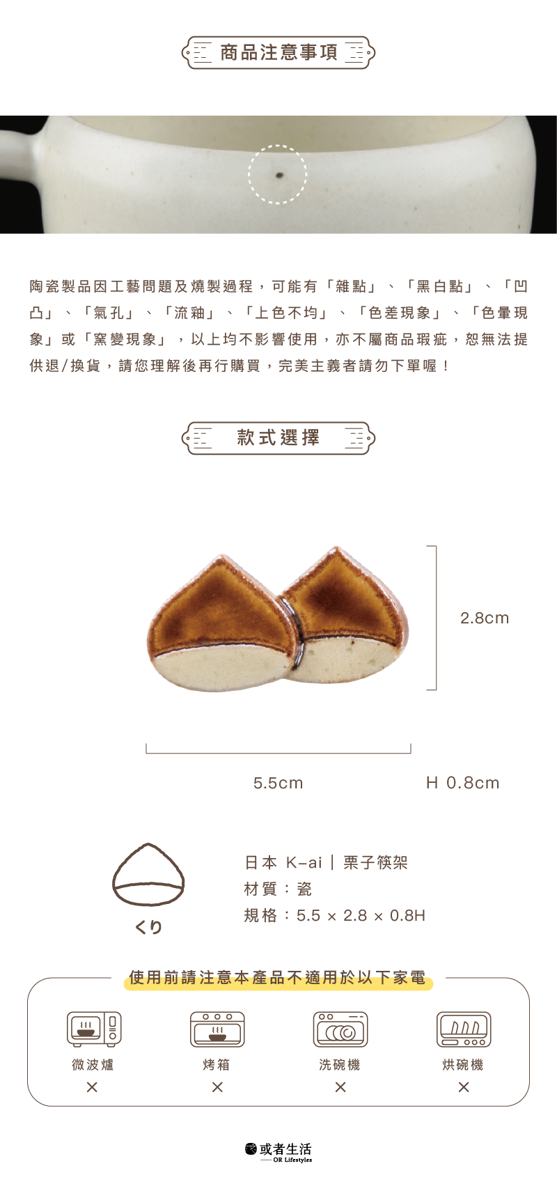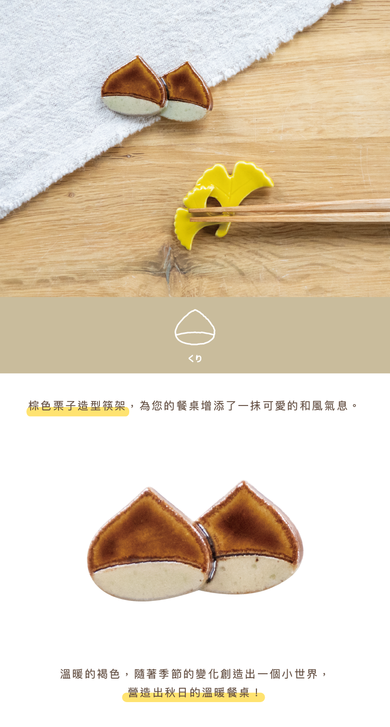 棕色栗子造型筷架,為您的餐桌增添了一抹可愛的和風氣息。手工製作的筷架,隨著季節的變化創造出一個小世界。