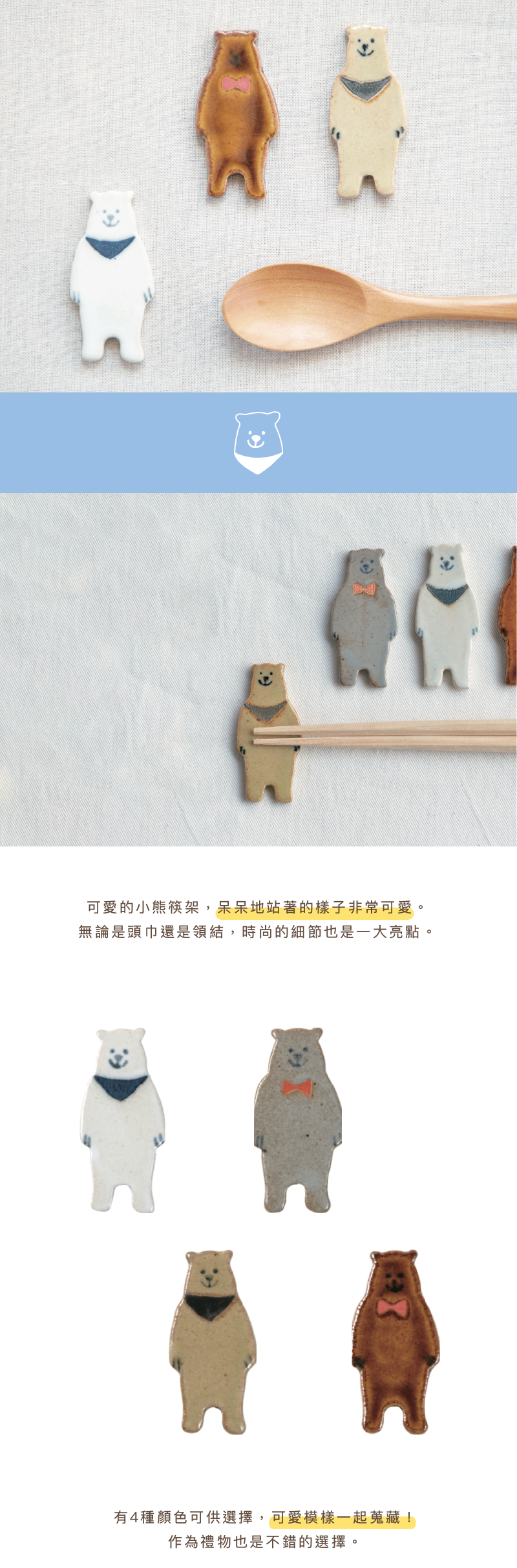 可愛的小熊筷架,看起來像一塊切好的餅乾,呆呆地站著的樣子超級可愛🐻❄️