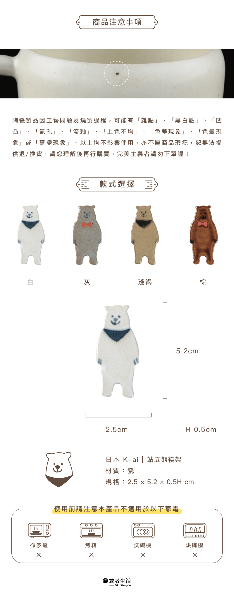 ●陶瓷製品因工藝問題及燒製過程,可能有「雜點」、「黑白點」、「凹凸」、「氣孔」、「流釉」、「上色不均」、「色差現象」、「色暈現象」或「窯變現象」,以上均不影響使用,亦不屬商品瑕疵
