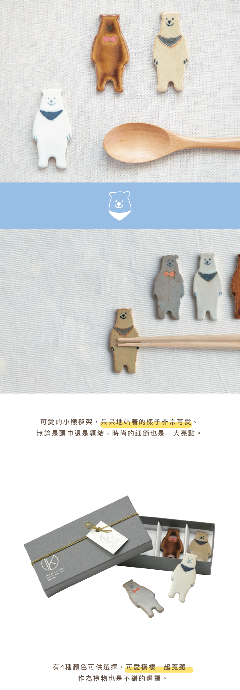 非常可愛的筷架套裝,上面有戴著圍巾和絲帶的友善小熊🐻❄️