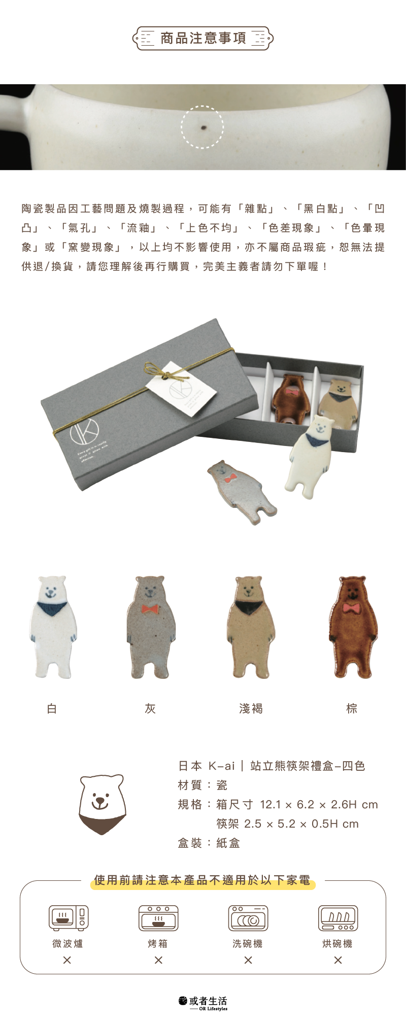 ●陶瓷製品因工藝問題及燒製過程,可能有「雜點」、「黑白點」、「凹凸」、「氣孔」、「流釉」、「上色不均」、「色差現象」、「色暈現象」或「窯變現象」,以上均不影響使用,亦不屬商品瑕疵