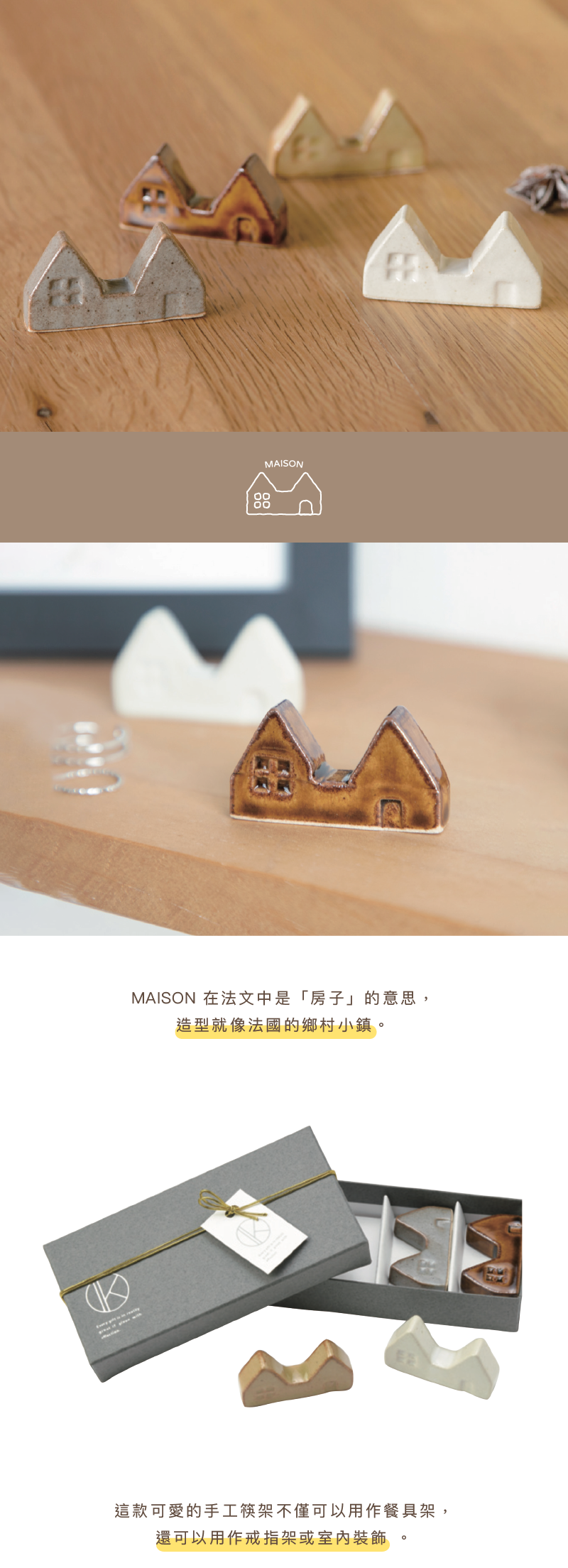 MAISON,在法文中是「房子」的意思, 這款可愛的手工層架,不僅可以用作餐具架,還可以用作戒指架或室內裝飾 。