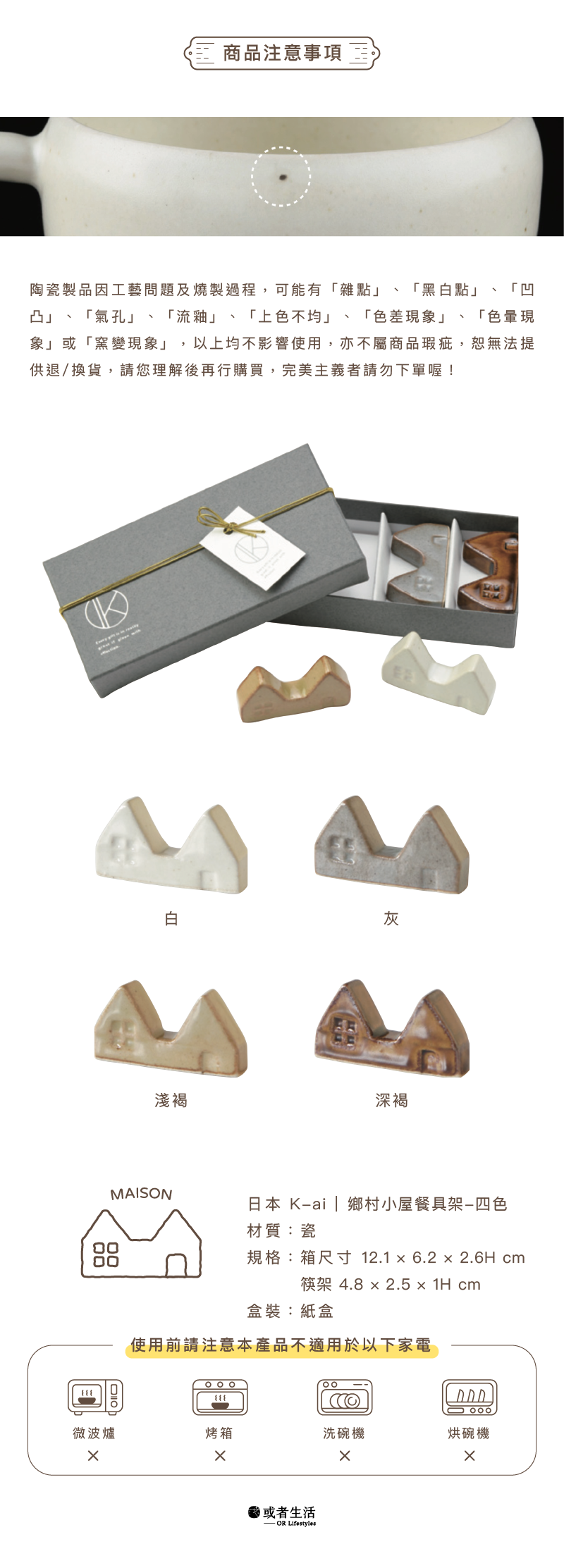 ●陶瓷製品因工藝問題及燒製過程,可能有「雜點」、「黑白點」、「凹凸」、「氣孔」、「流釉」、「上色不均」、「色差現象」、「色暈現象」或「窯變現象」,以上均不影響使用,亦不屬商品瑕疵