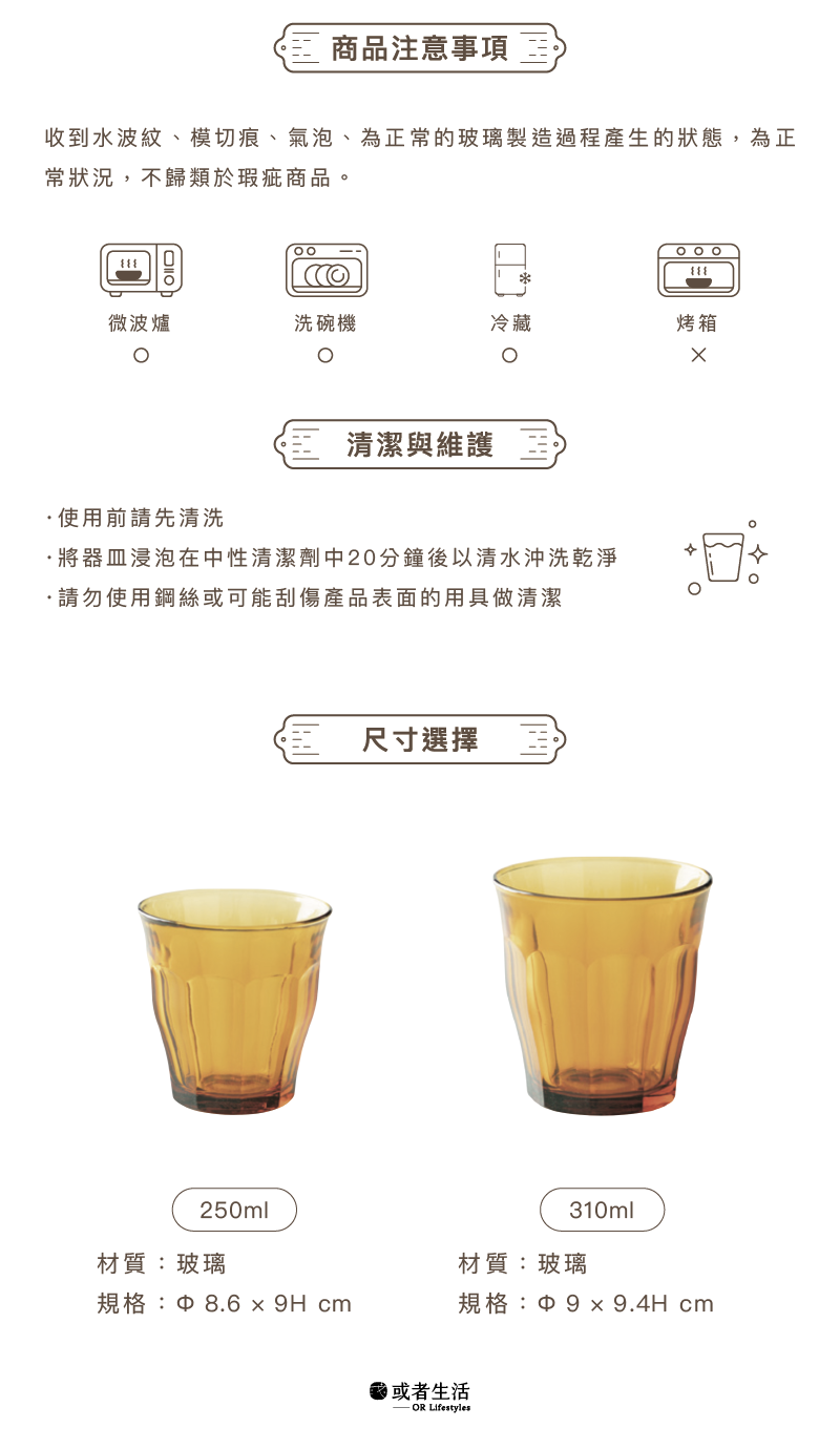 復古氣息的琥珀色玻璃營造出溫馨的空間,杯身完美弧線,好握持,適合各年齡層的人使用。