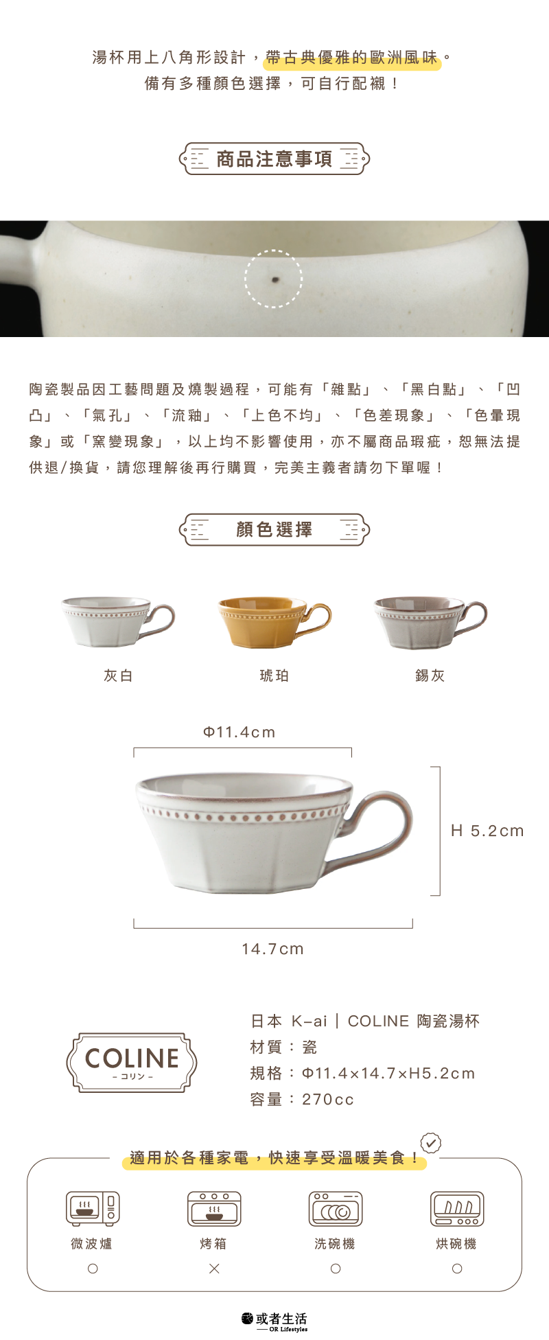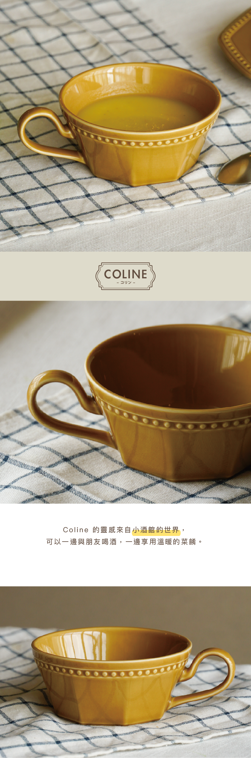 Coline 八角湯杯展現歐風古典氣息,手感溫潤,多色可選,為餐桌增添儀式感。