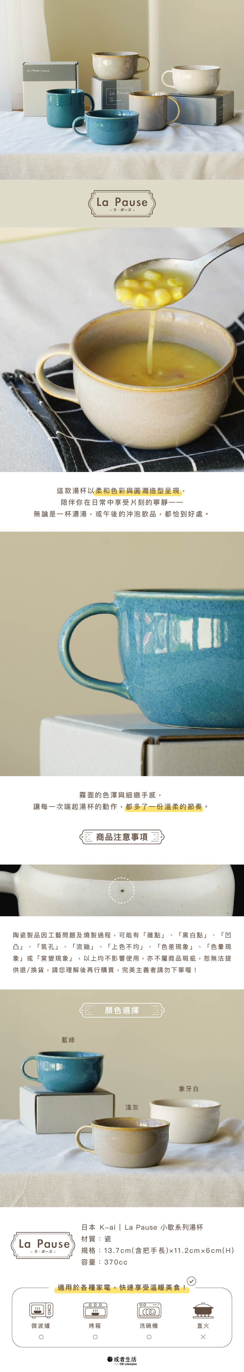 「La Pause」意為「小歇片刻、放鬆時光」。湯杯圓潤造型與霧面質感,陪你享受濃湯或午後飲品的片刻寧靜,每一次端起都帶來溫柔節奏。