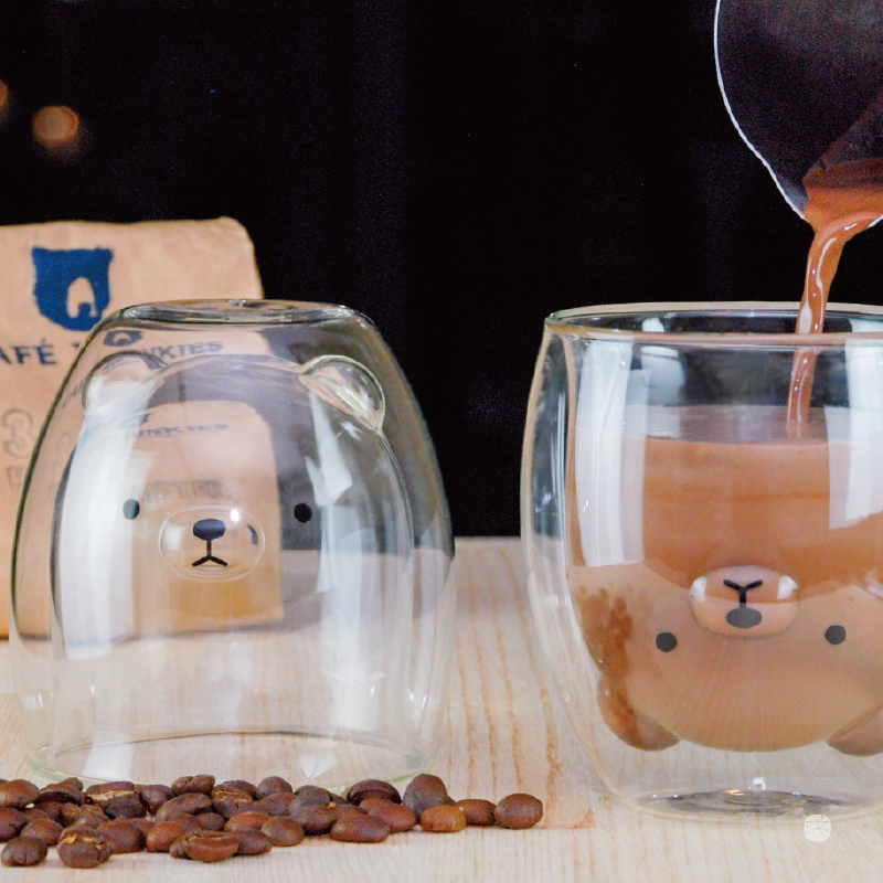 超可愛小熊造型,雙層隔熱、隔冰、耐高溫、好握拿的實用性,搭配可愛的療癒造型。