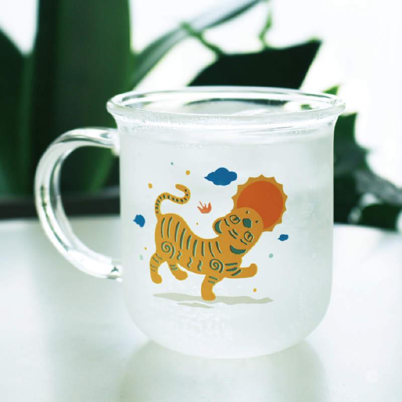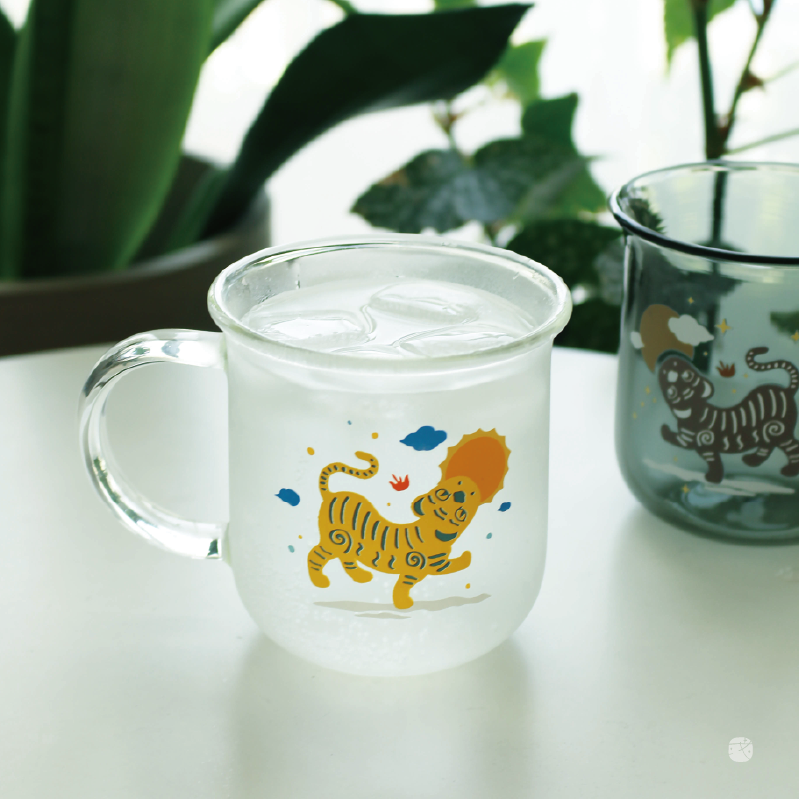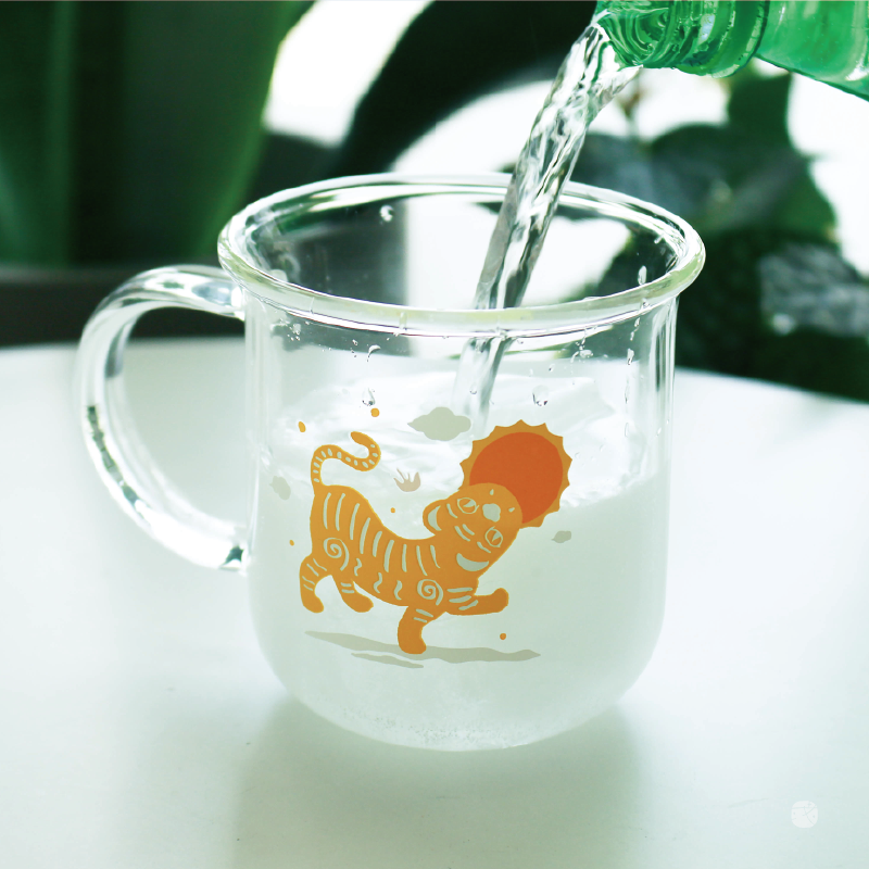 我們將兩隻老虎的圖像簡單、可愛化,分別燒製在清透、透黑的杯身上