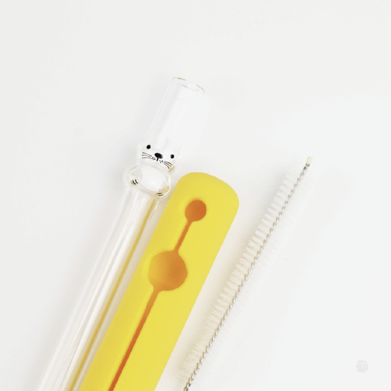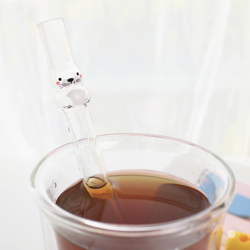 🦭海豹造型玻璃吸管,獨家專利一體成型,粗口徑1.3cm珍珠大口吸,斜口設計封膜輕鬆戳,好清潔、不易藏污納垢。