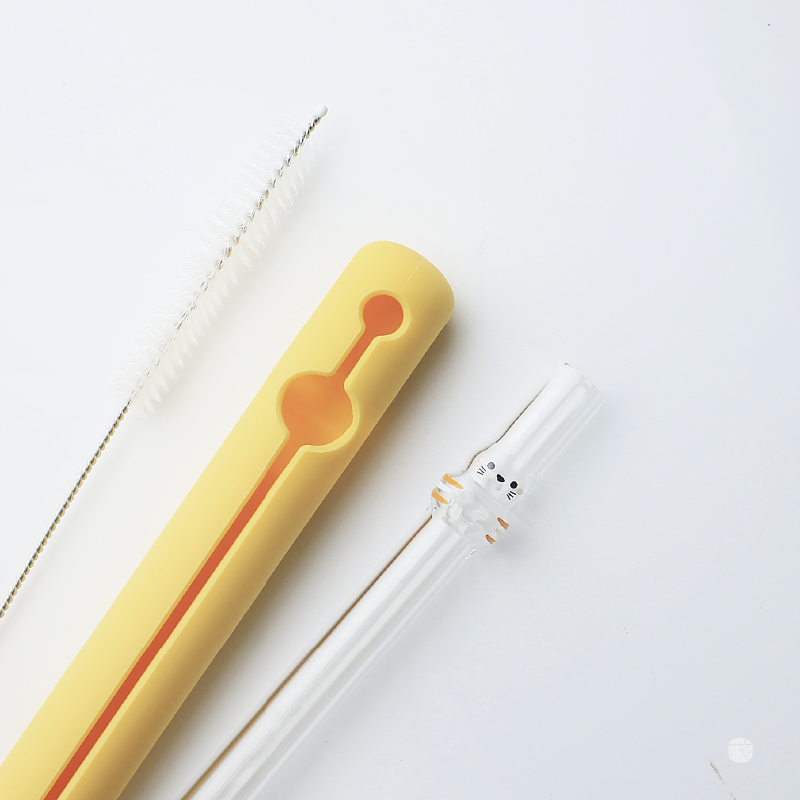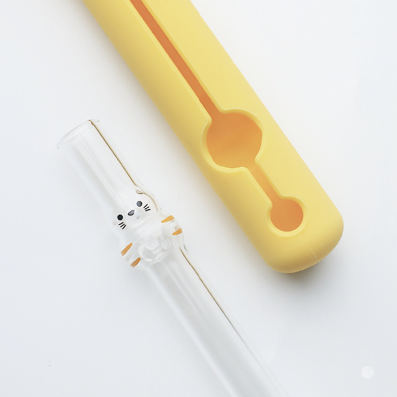 貓咪造型玻璃吸管,獨家專利一體成型,粗口徑1.3cm珍珠大口吸,斜口設計封膜輕鬆戳,好清潔、不易藏污納垢。