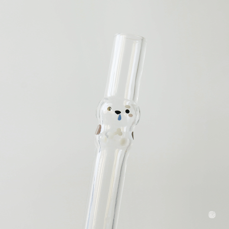 小狗造型玻璃吸管,獨家專利一體成型,粗口徑1.3cm珍珠大口吸,斜口設計封膜輕鬆戳,好清潔、不易藏污納垢、沒有異味殘留。