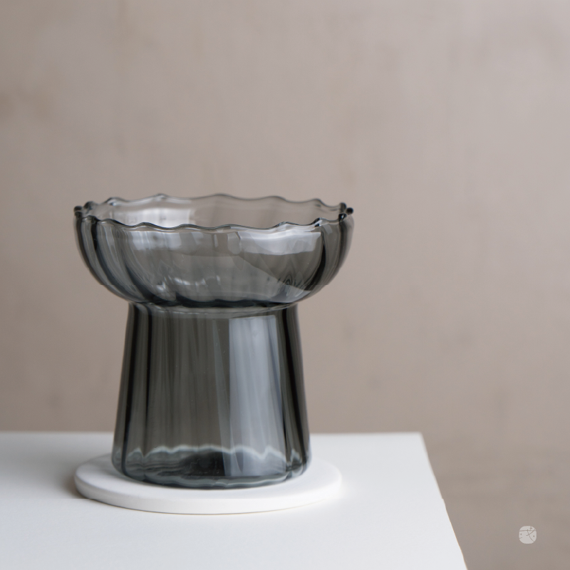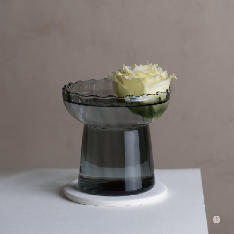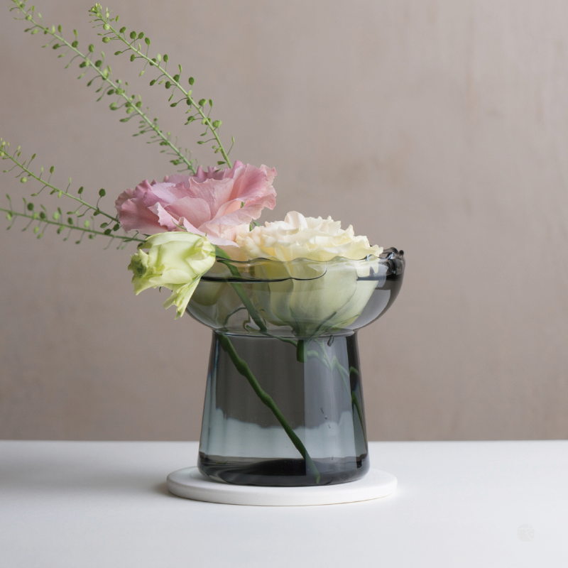以口吹技法搭配手工製作,創造出帶有立體流線的瓶身與花邊,富有東方風格瓶身曲線,適合擺放茶席間、玄關等, 簡單一束花朵投瓶,即能享受美好的居家風景。