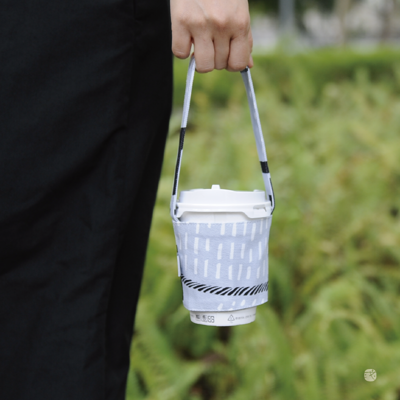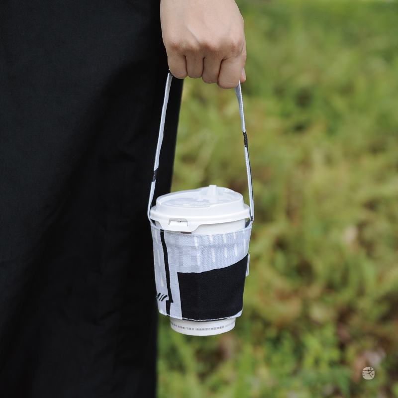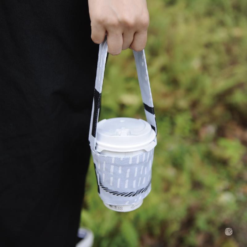 飲料套可雙面使用,翻過來變成素面飲料套,弄髒了可丟洗衣機。