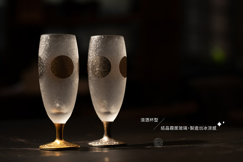 精選日本《石塚硝子》品牌,清酒杯型 / 結晶霧面玻璃,製造出冰涼感。太陽與月亮相互追隨,象徵日與月的懷抱,寓意著永恆不變的愛,適合送給情侶、新婚夫妻、金婚長輩。
