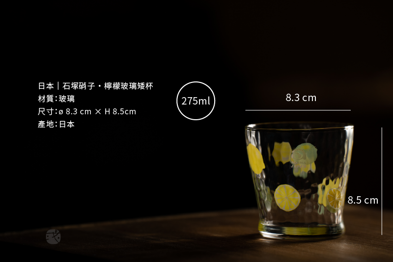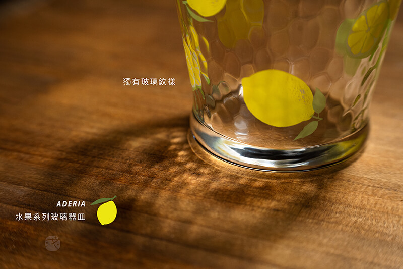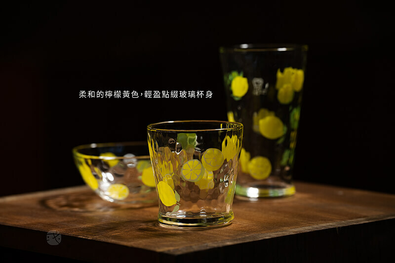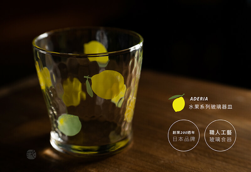 由日本玻璃大廠《石塚硝子》設計製造,ADERIA水果系列玻璃器皿,來自日本職人傳統精湛技術和製作手法,柔和的檸檬黃色,輕盈點綴玻璃杯身。