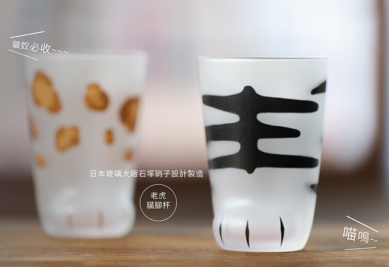 由日本玻璃大廠《石塚硝子》設計製造的「貓腳杯」系列新款式,杯身霧面磨砂玻璃質感,觸感細緻,可愛貓足造型,杯底更有大大肉球圖案,萌到不行,貓奴必收!