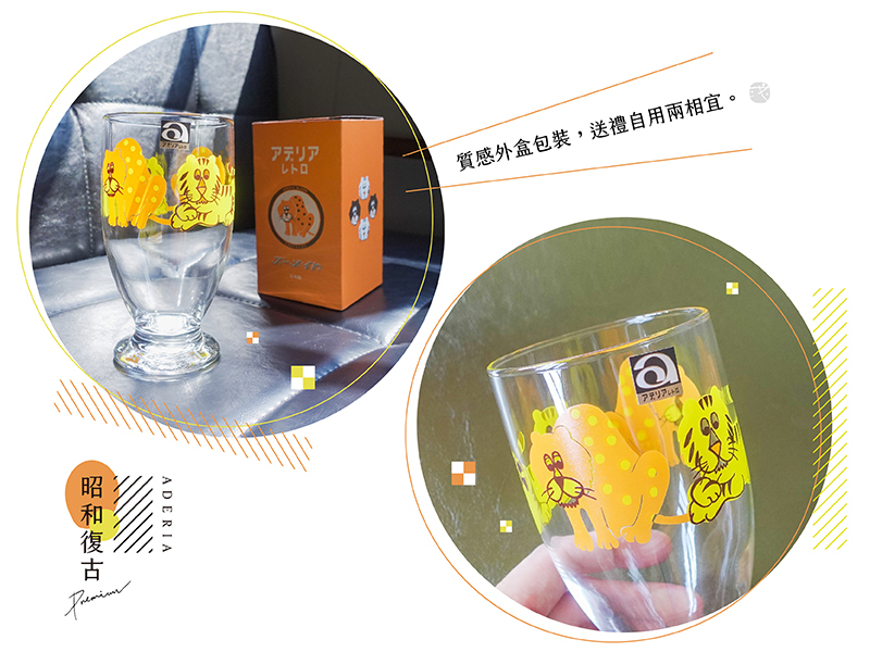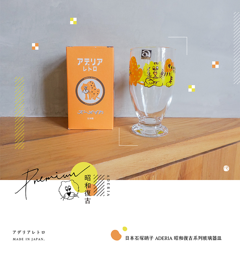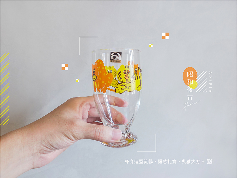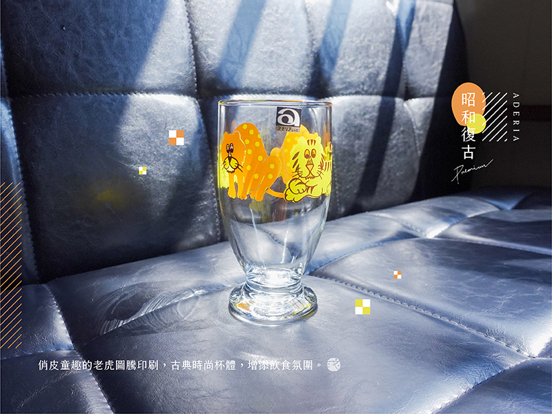 來自日本百年玻璃大廠「石塚硝子」ADERIA-昭和復古系列玻璃器皿,杯身俏皮童趣的老虎圖騰印刷,古典時尚杯體,增添飲食氛圍!