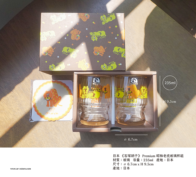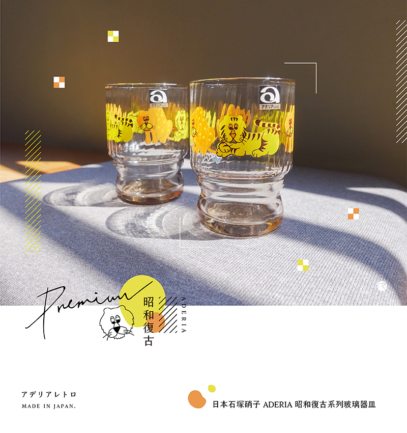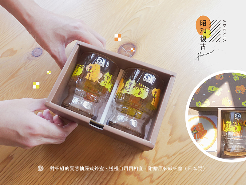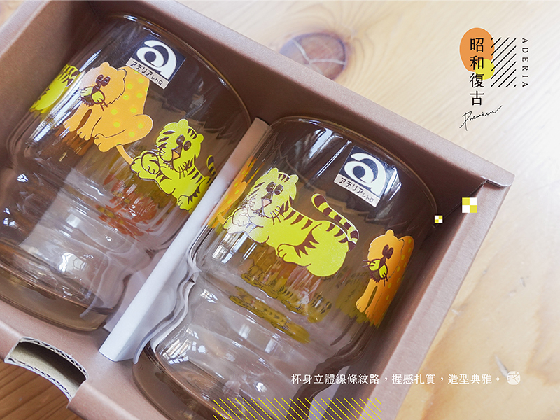日本百年玻璃大廠「石塚硝子」ADERIA-昭和復古系列玻璃器皿,以動物園裡的超人氣動物「老虎」與「花豹」設計而成,昭和復古杯身造型,玻璃杯上睡眼惺忪愛睏的花豹配上俏皮可愛的老虎,童趣的搭配讓人忍不住會心一笑,質感外盒包裝,附贈原裝紙杯墊!