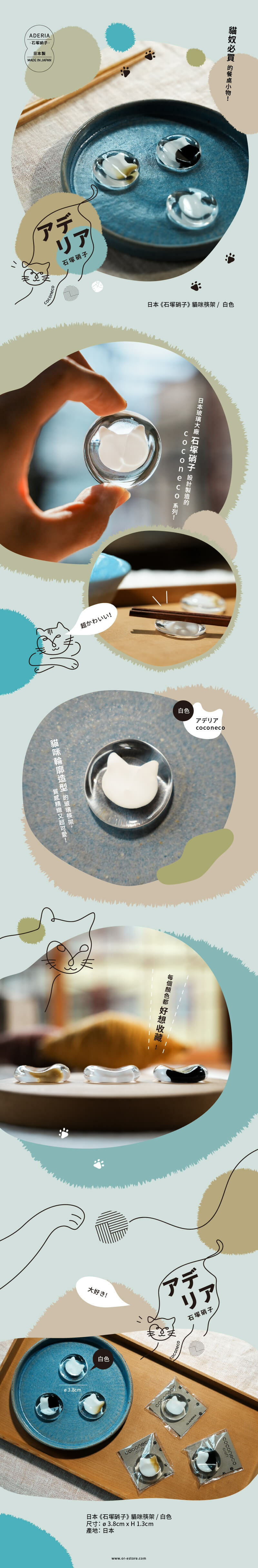 日本玻璃大廠「石塚硝子」設計製造的coconeco系列-貓咪輪廓造型的玻璃筷架,質感精緻又超級可愛,是貓奴必備的餐桌小物!