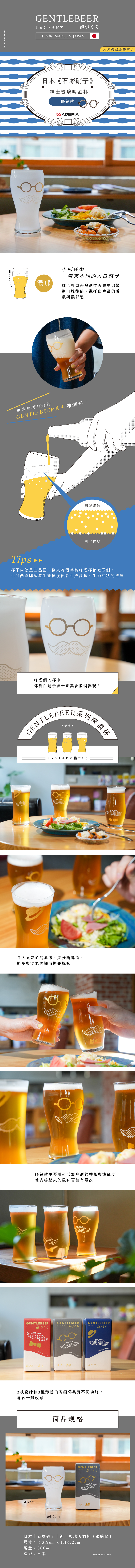 精選日本《石塚硝子》品牌,專為啤酒打造的GENTLEBEER系列啤酒杯 杯壁呈凹凸面,倒入啤酒時杯身白鬍子紳士圖案會悄悄浮現!