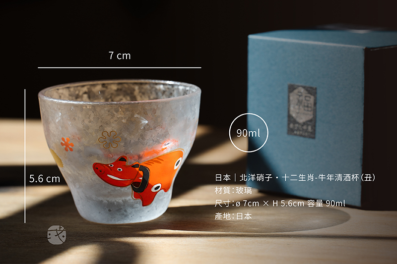 日本「石塚硝子」《十二生肖》系列清酒杯-牛年為黏土牛,意在祈求豐收,而"雪花紋"則有"瑞雪兆豐年"之意。厚實耐用手感,搭配獨特的冰晶紋理,展現出層次細膩之美!