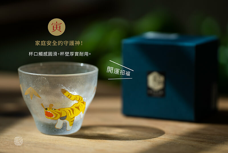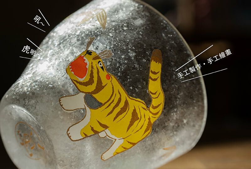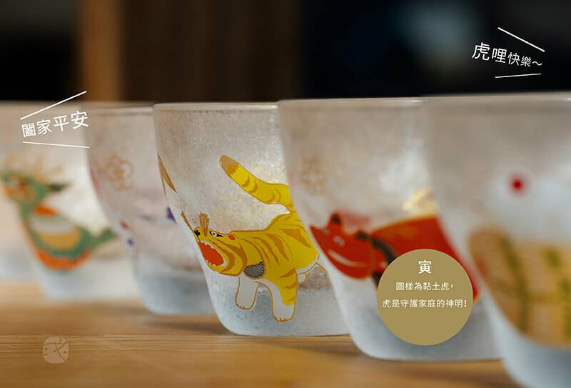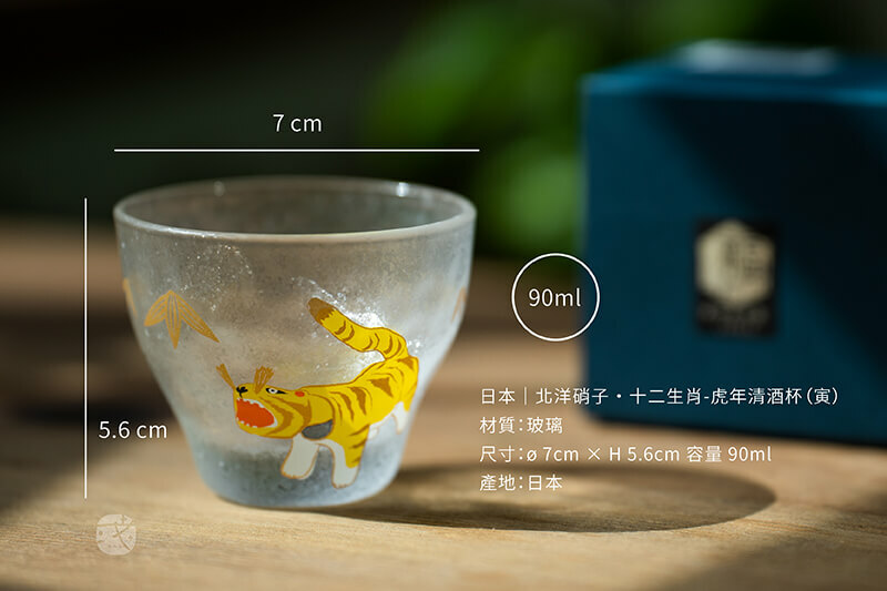 日本「石塚硝子」《十二生肖》系列清酒杯-圖樣為黏土虎,虎是守護家庭的神明,而堅韌不屈的竹紋,象徵"家庭安全"。厚實耐用手感,搭配獨特的冰晶紋理,展現出層次細膩之美!