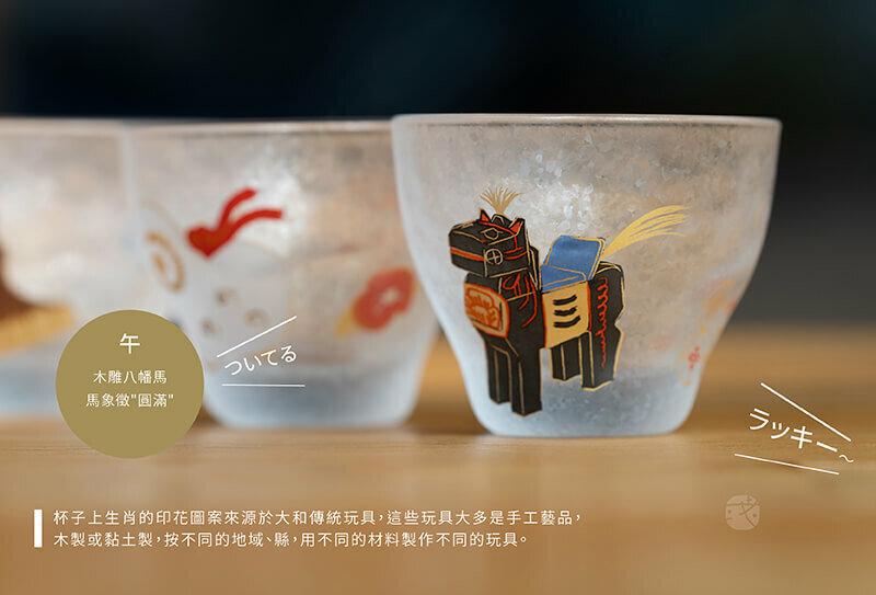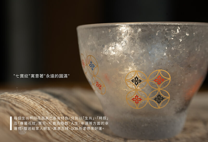日本「石塚硝子」《十二生肖》系列清酒杯-馬象徵"圓滿","七寶紋"同樣寓意著"永遠的圓滿"。厚實耐用手感,搭配獨特的冰晶紋理,展現出層次細膩之美!