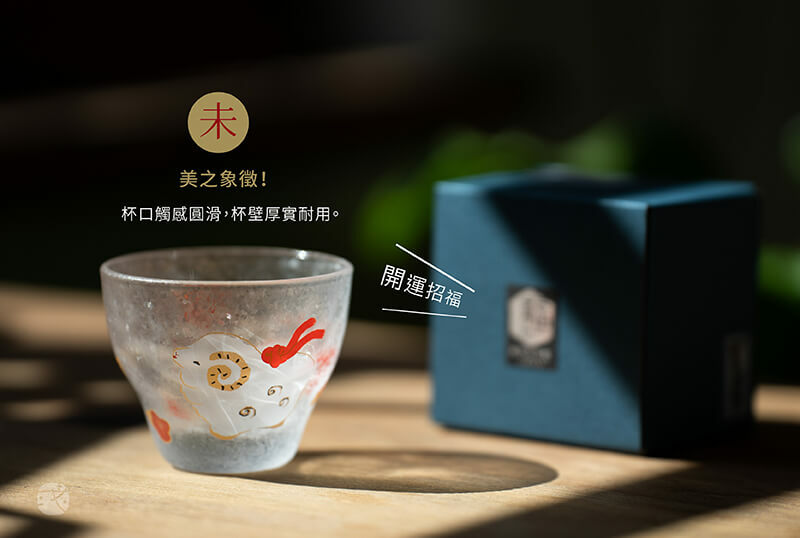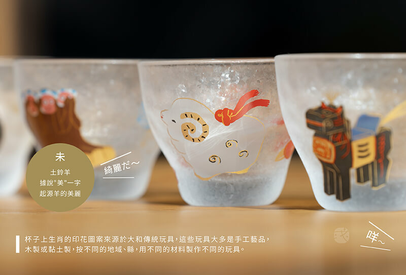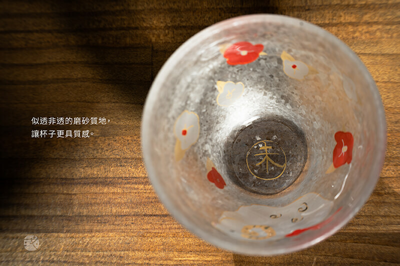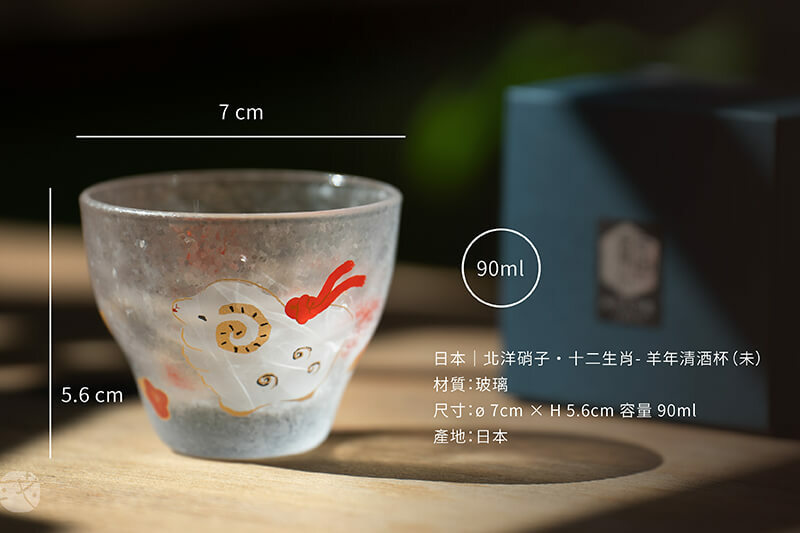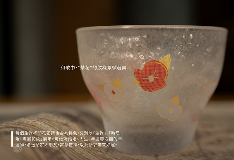 日本「石塚硝子」《十二生肖》系列清酒杯-據說"美"一字起源于羊的美麗,而在和歌中,"茶花"的紋樣同樣象徵著美。厚實耐用手感,搭配獨特的冰晶紋理,展現出層次細膩之美!