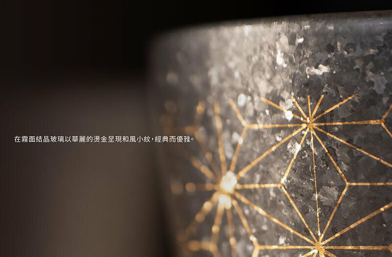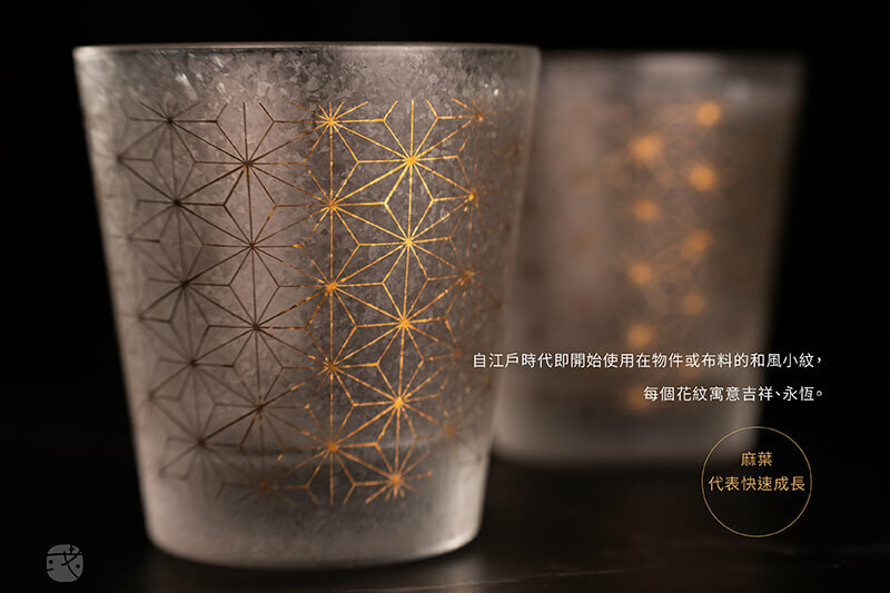 「麻葉」樣式代表快速成長和寓意吉祥、永恆。在霧面結晶玻璃上以華麗的燙金形式呈現,為日常飲用中,帶來經典而優雅的生活風格!
