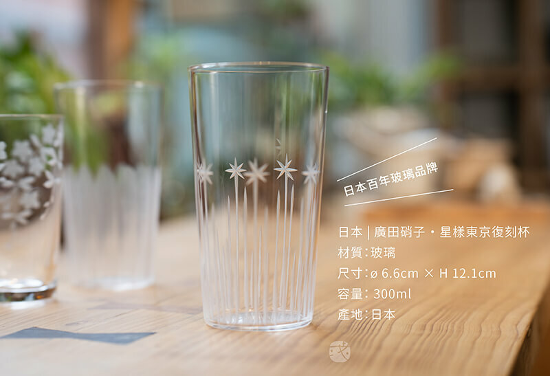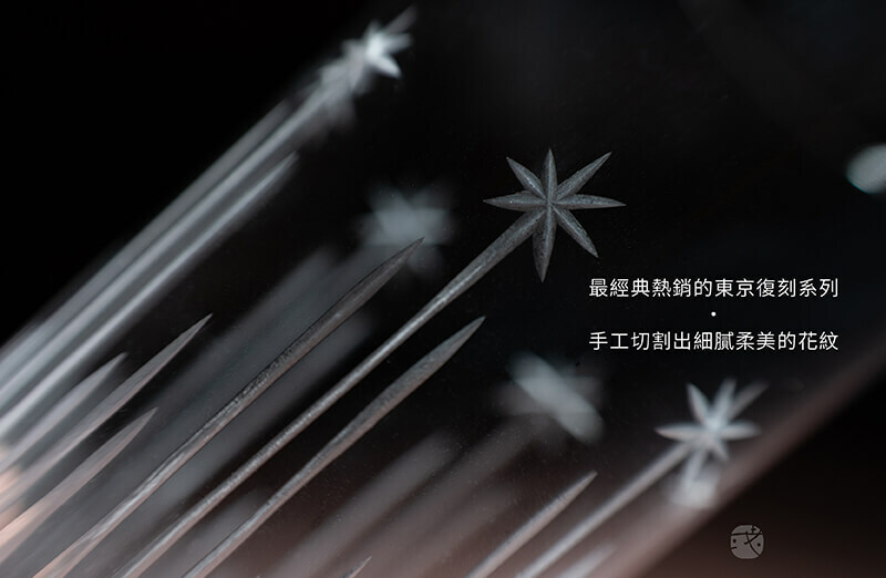 自明治時代起至今已超過百年歷史的日本《廣田硝子》工藝品牌,以對玻璃與切子工藝之頂級技巧,製作出精緻優雅的手作玻璃器皿,「星樣東京復刻杯」呈現出切子工藝中的細緻刻紋,體現優雅的日式簡約氣質。