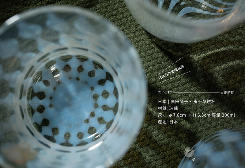 創立於1899年東京最古老的玻璃製造品牌,廣田硝子【大正浪漫】系列重現失傳技法,以獨一無二的手作技法燒製出美麗的「乳白色」紋樣,典雅紋樣映照出夢幻的光影變化,捧在手裡溫潤而賞心悅目。