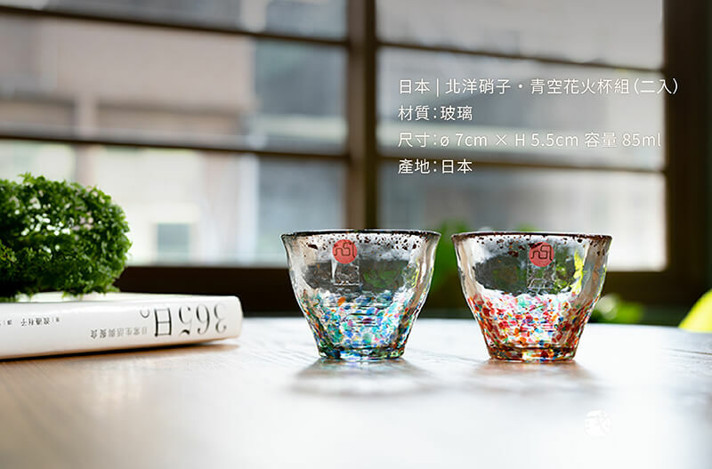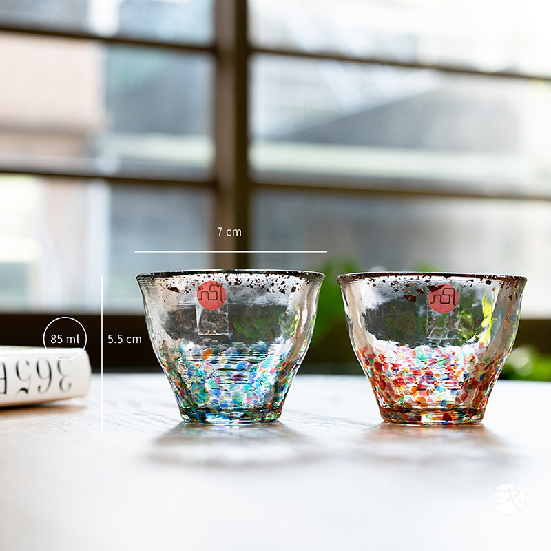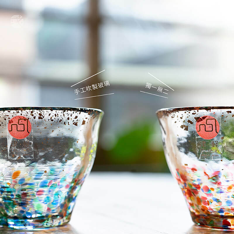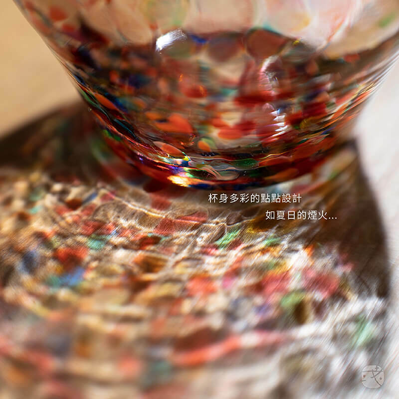 精選日本《北洋硝子》品牌, 杯緣金箔設計,杯身多彩的點點設計如夏日的煙火,手工吹製玻璃,獨一無二的夢幻逸品。