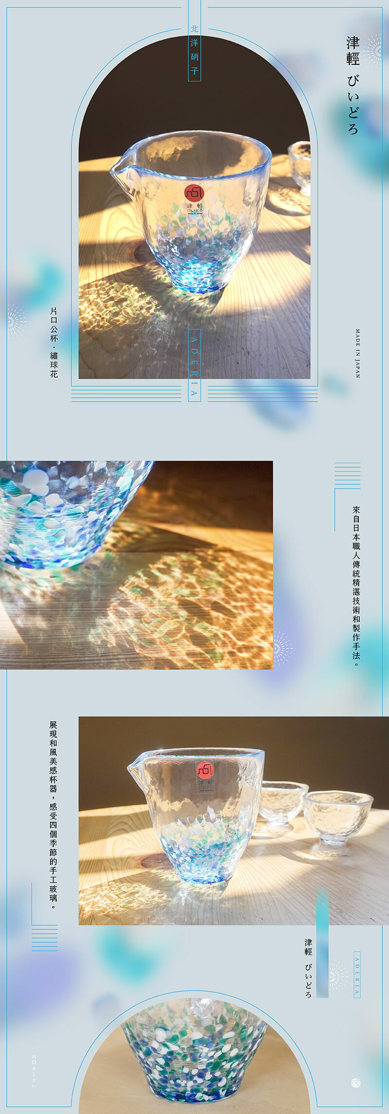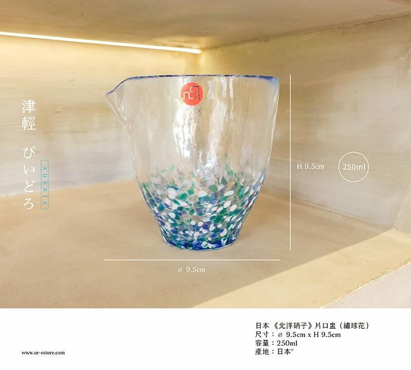 精選日本《北洋硝子》品牌-津輕手作玻璃,來自日本職人傳統精湛技術和製作手法,繡球花藍色調設計,清爽耐看,可當作茶具中的公杯使用。