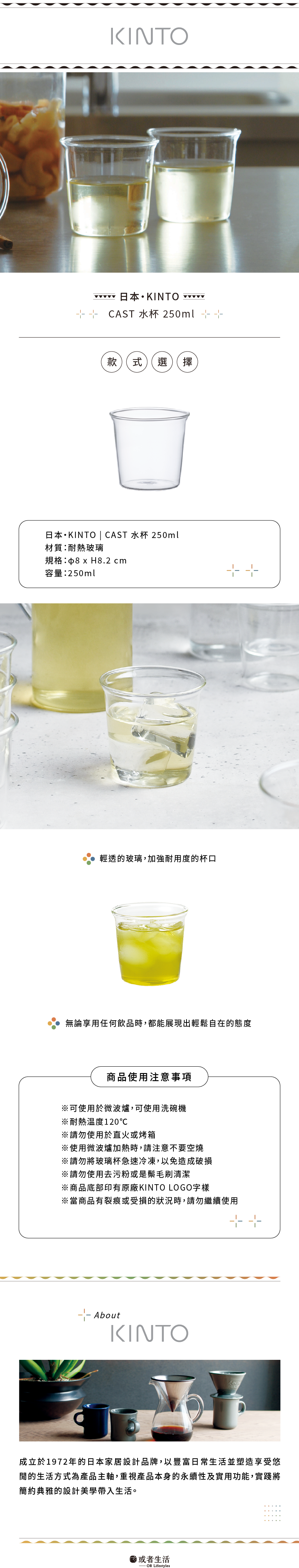 CAST 系列以「無阻礙的設計」打造,簡潔俐落的玻璃材質適用各種空間,杯柄角度經分析設計,握取輕鬆無負擔;加強耐用杯緣,讓飲用各類飲品更自在。