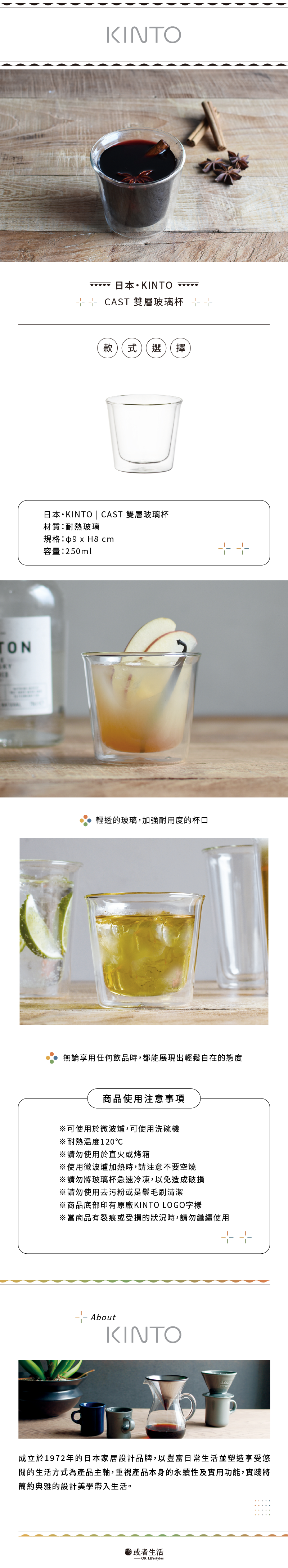 以「無阻礙的設計」為概念,設計出簡單而優雅的CAST系列商品。輕透的玻璃,加強耐用度的杯口,讓您無論享用任何飲品時,都能展現出輕鬆自在的態度。